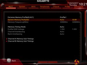 Memory dividers up to 32x can be selected and enabling XMP is as easy as clicking the button.