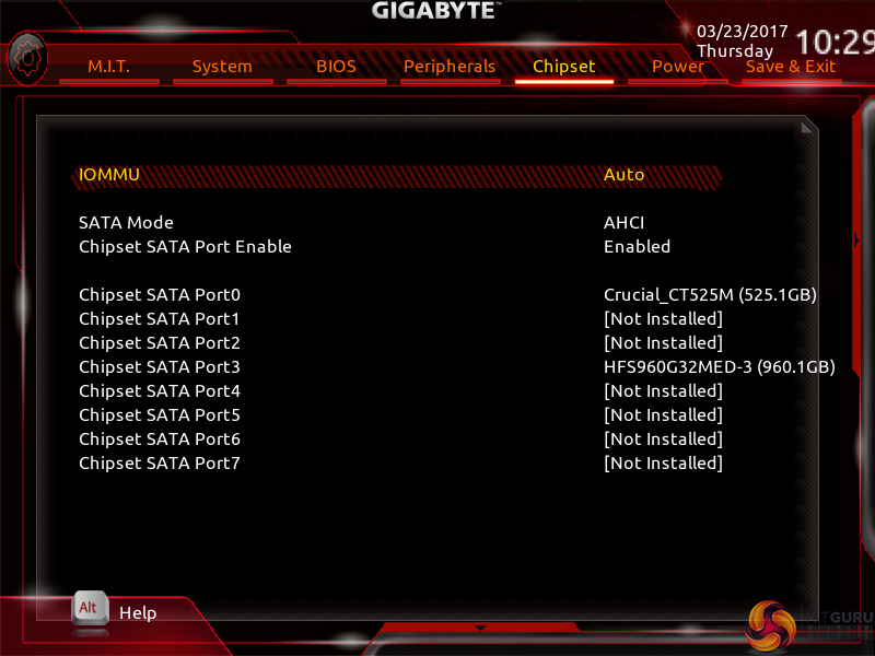 Settings relating to IOMMU support, among others, can be tweaked in the Chipset page.