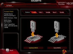 Gigabyte’s BIOS updating tool – Q-Flash – is accessed via a hidden tab on the bottom of the screen. I took a few minutes to find its location which was annoying as it would make more sense if there was some reference to it in one of the main pages, such as BIOS.