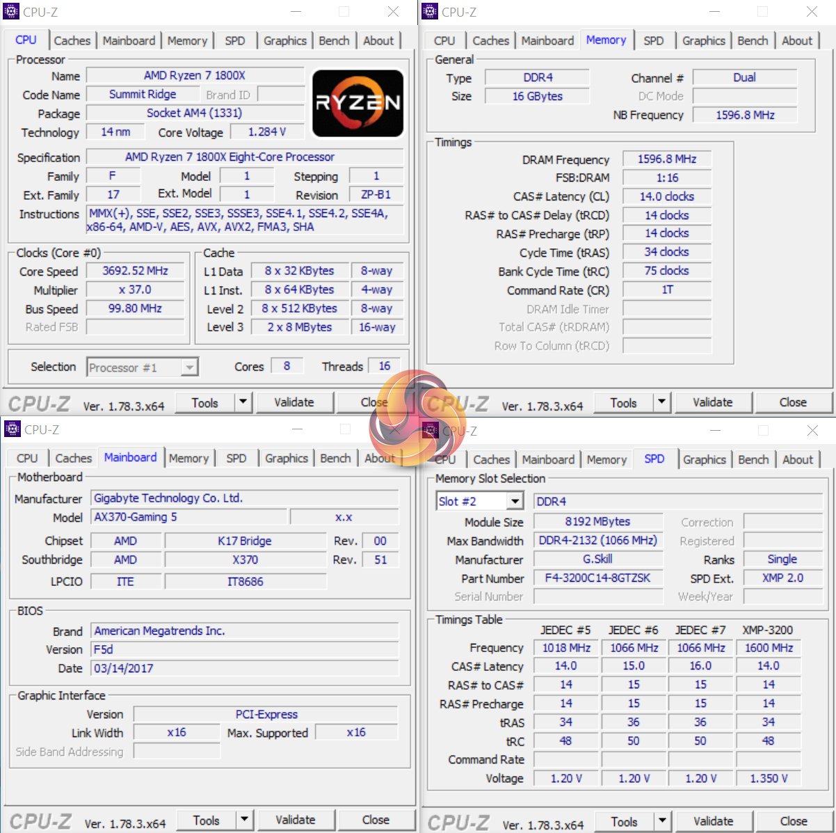 We will be outlining the Gigabyte Aorus AX370-Gaming 5 motherboard’s performance with the Ryzen 7 1800X CPU and 16GB of 3200MHz G.Skill TridentZ DDR4 memory.