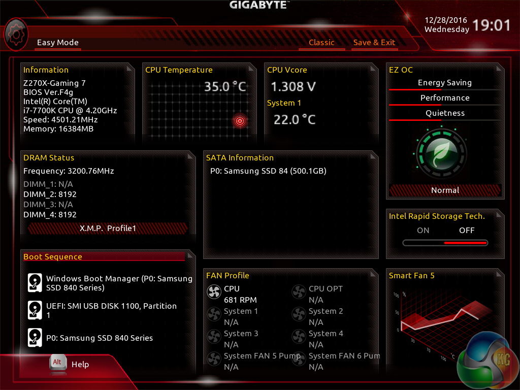 EasyTune is Gigabyte's tool for managing system operating parameters. The performance profile of the system can be adjusted using EasyTune and there's also the option to conduct automated system tuning (which gave us a 4.7GHz CPU frequency, as we'll highlight later in this review).