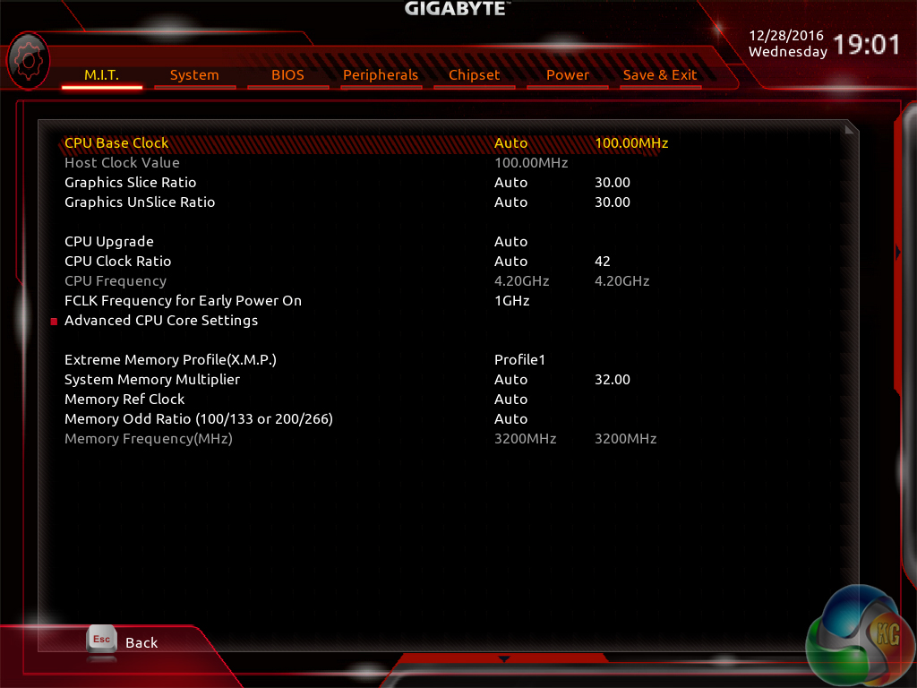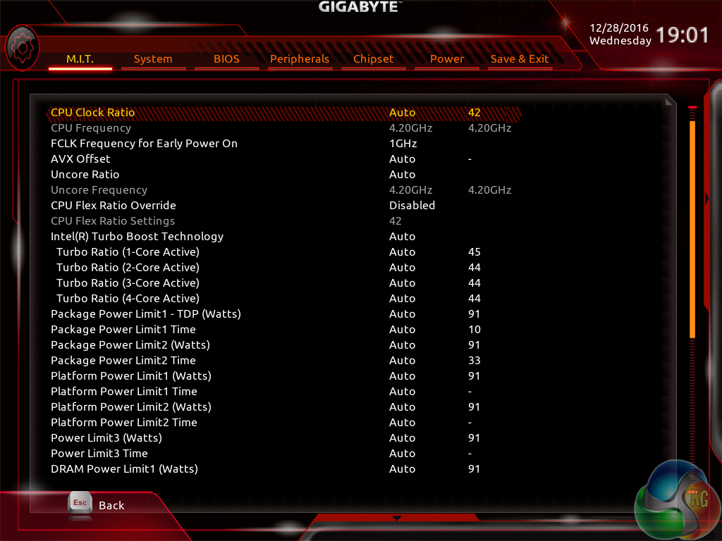 The subsection splitting does force a user to jump back and forth between pages but it also helps to keep the individual subsections tidy and without an overwhelming amount of information on one page (I'm looking at you, ASUS and MSI). Judging whether this sectioned layout or one where most settings are on a single page is better is down to individual preferences, as my colleague Ryan is not particularly fond of jumping between subsections but I personally prefer the segregation.