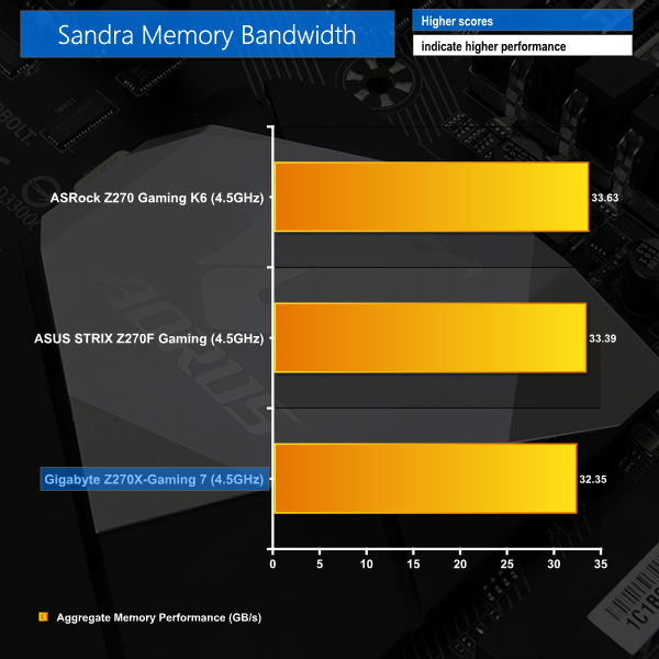 Memory bandwidth on Gigabyte's Z270 board is a little lower than that of the ASRock and ASUS competitors which makes for a similar picture with the 7-Zip result.