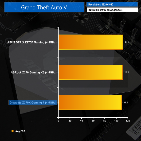 Grand Theft Auto V remains an immensely popular game for PC gamers and as such retains its place in our test suite. The well-designed game engine is capable of providing heavy stress to a number of system components, including the GPU, CPU, and Memory, and can highlight performance differences between motherboards. We run the built-in benchmark using a 1080p resolution and generally Maximum quality settings (including Advanced Graphics).