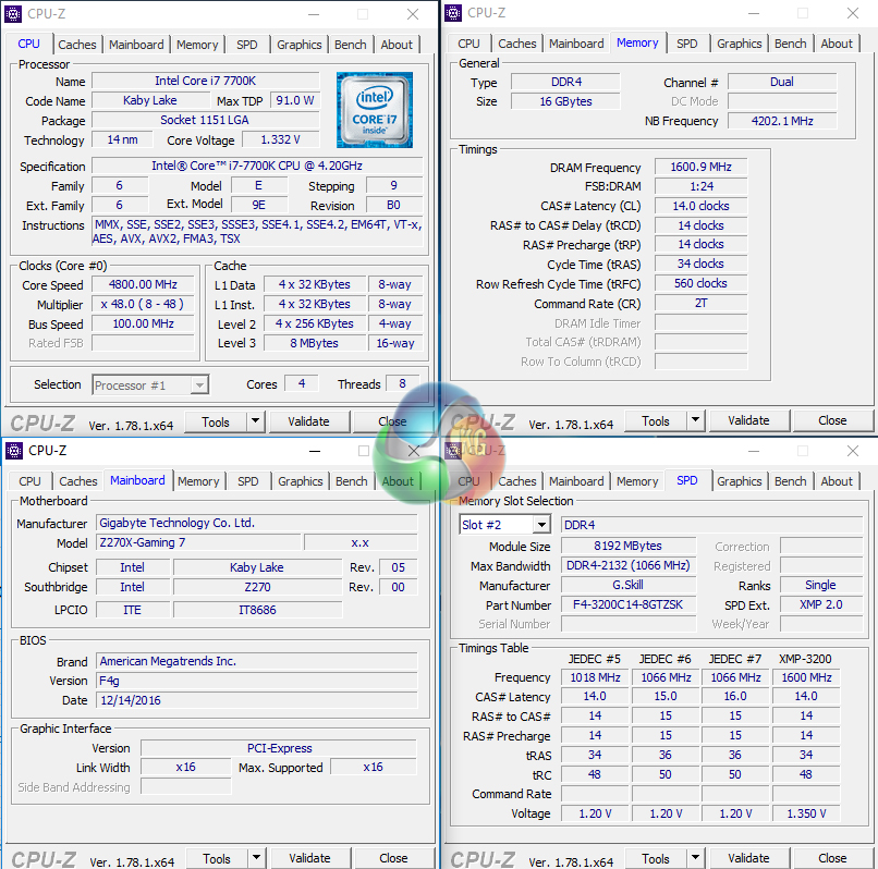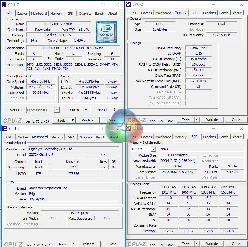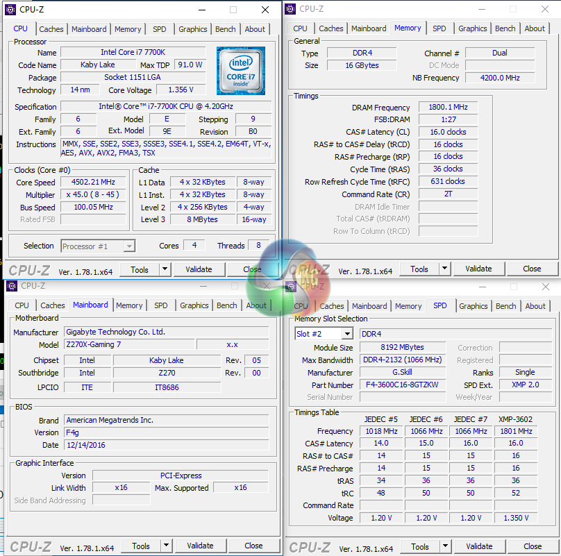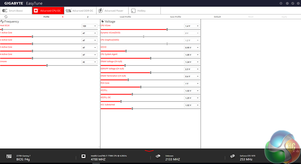 The OS-based auto tuning found inside EasyTune software worked, and that's about it. The speed bump was only 200MHz from a forced-turbo 7700K and 4.7GHz at 1.4V is a very conservative overclock that basically all 7700K CPUs should achieve. Realistically, that voltage could be dropped by at least 50mV while still maintaining stability.