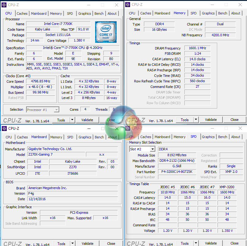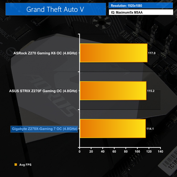 Gigabyte's Aorus Z270X-Gaming 7 managed to take our Core i7-7700K to its maximum Prime-stable overclock of 4.8GHz using 1.35V. The board actually did this with less than 1.35V (1.33 under load) by virtue of the poor LLC settings.