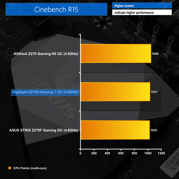 Overclocking delivers a nice performance boost for the Aorus Z270X-Gaming 7.