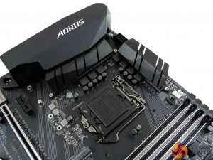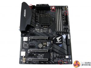 The Gigabyte Aorus Z270X-Gaming K5 uses primarily-black colouring, allowing the RGB LEDs to add unique styling tailored to individual preference. A solid black Aorus rear IO cover adds appeal to the board alongside the eye-catching Aorus chipset heatsink. Subjectively, this is a very aesthetically pleasing motherboard without even switching on the LEDs.