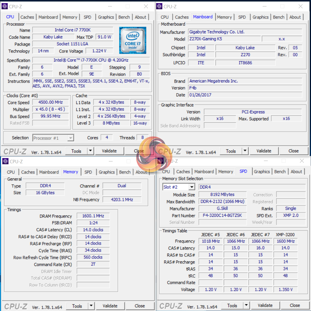 - Gigabyte Aorus Z270X-Gaming K5 BIOS F4b (latest).