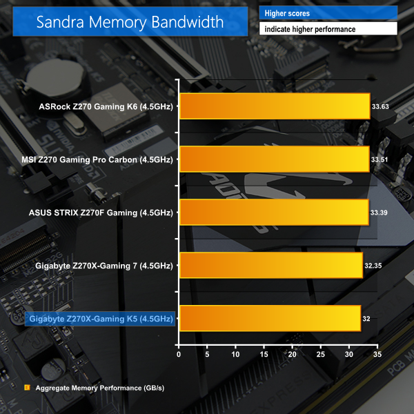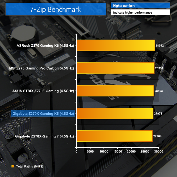 Memory bandwidth performance falls off the pace a little for the Gaming K5. This has a minor impact on the 7-Zip score, although the performance drop-off is realistically unnoticeable (less than 1%).