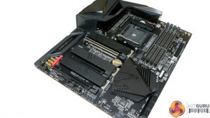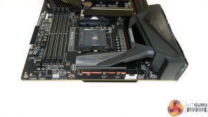 Four dual-latch DIMM slots house up to 128GB of DDR4 memory. These DIMM slots are steel reinforced to minimise PCB flex. Gigabyte highlights support for some 5GHz+ RAM kits according to the QVL.