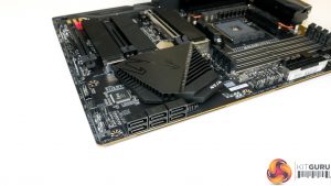 The design is not too tall or oversized, and there is no need for a VRM fan, thankfully. The motherboard also gets some assisted cooling for the PCB near the VRM via contact with the metal backplate.