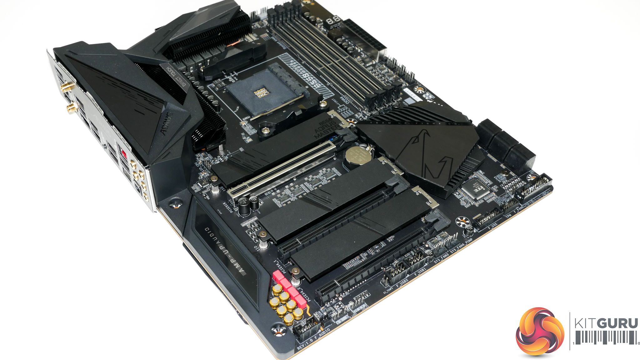 Primarily black and dark grey in styling, the Gigabyte B550 Aorus Master is an aesthetically pleasing motherboard and fits the usual AORUS theme.