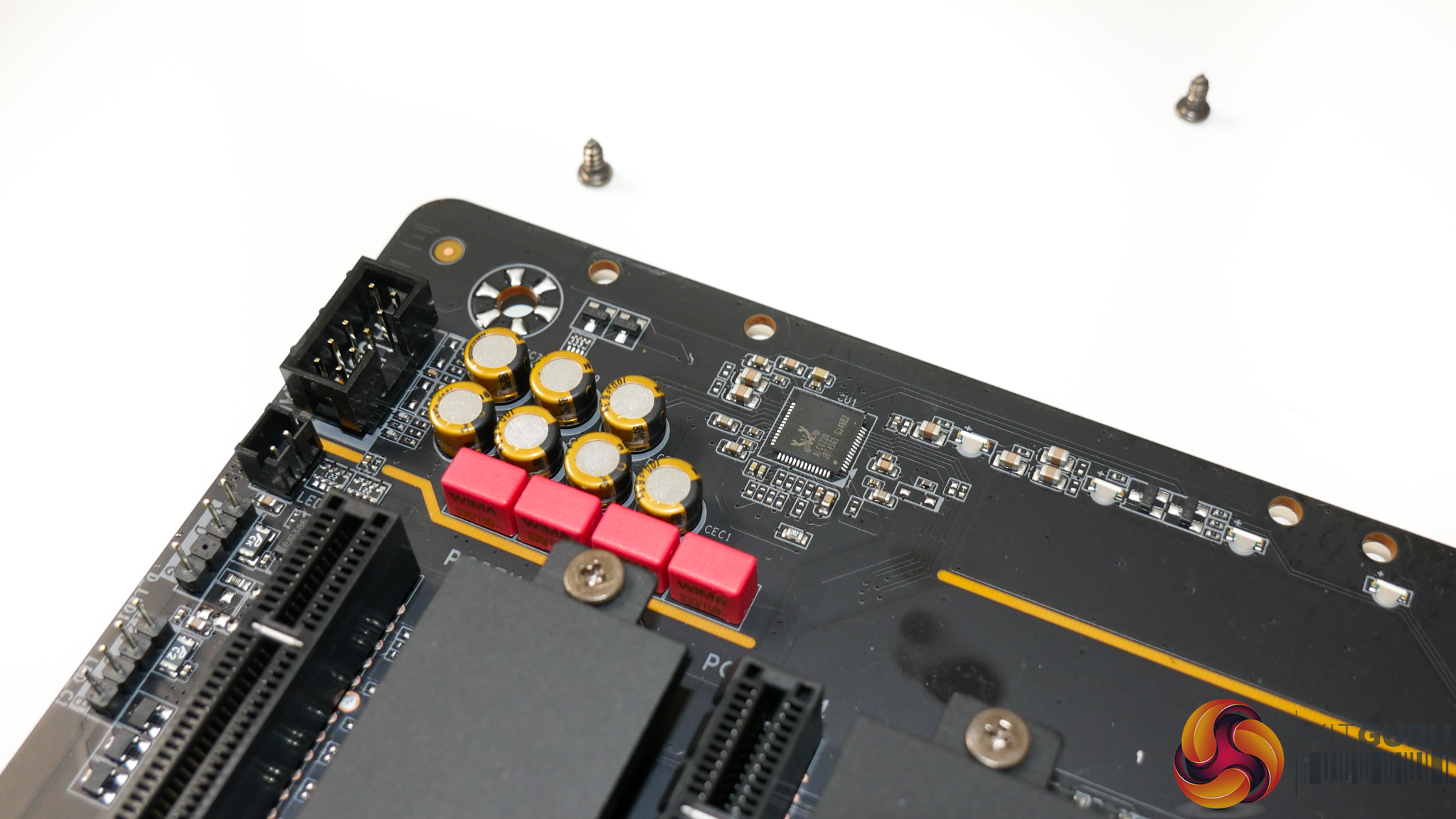 Gigabyte uses a proper finned heatsink design with the two arrays connected via a flattened heatpipe. The direct touch heatpipe is used with 7.5W/mK LAIRD thermal pads and mounted under high pressure with screws (not push pins).