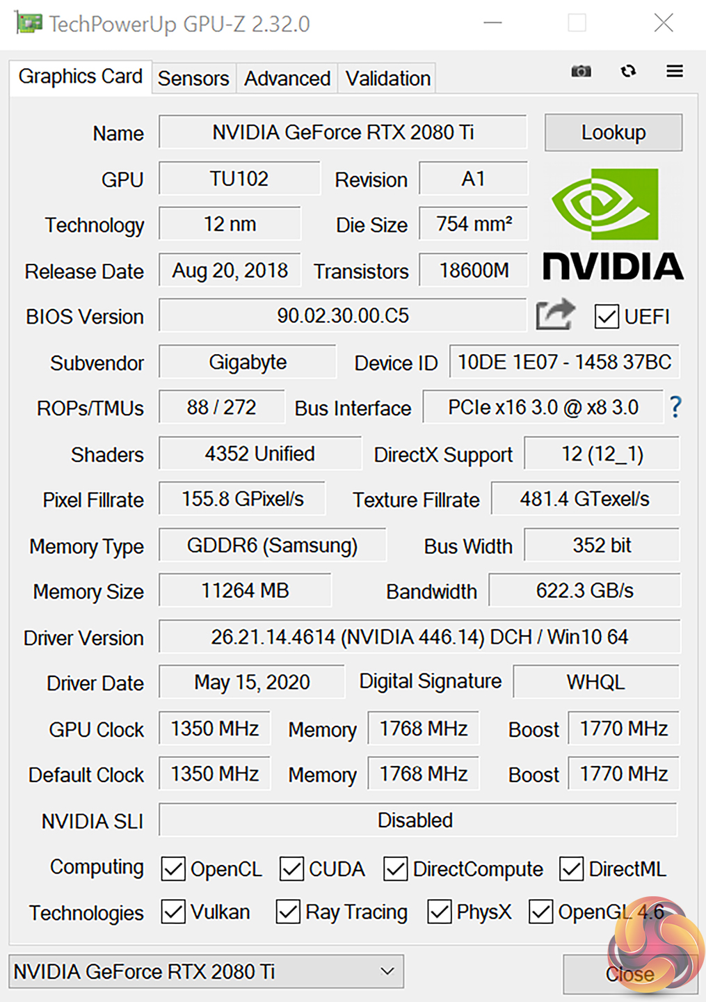 - Graphics Card: Gigabyte Aorus RTX 2080 Ti XTREME (custom fan curve to minimise thermal throttling).