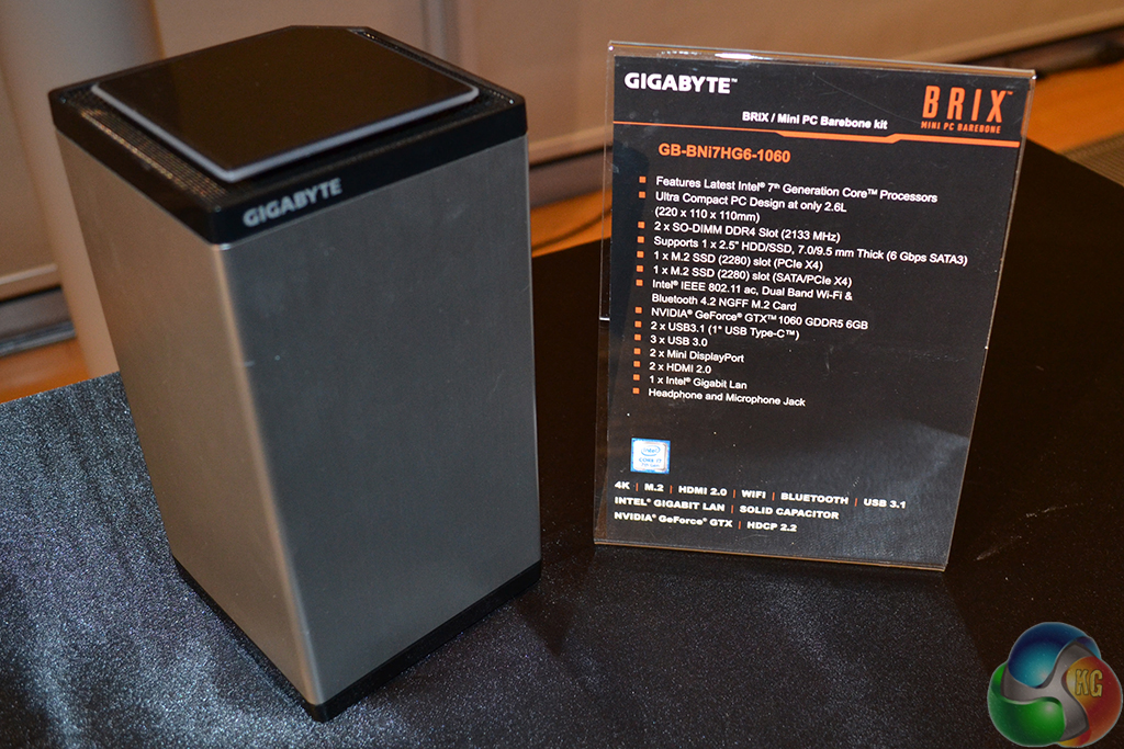 The BRIX Gaming Mini PC was also on display in its new GTX 1060 form. Updated to support Intel’s 7th generation Kaby Lake CPUs and Nvidia’s Pascal GTX 1060 6GB GPU, the new BRIX Gaming could be a vastly improved successor to the original GTX 950-equipped model that we reviewed HERE.
