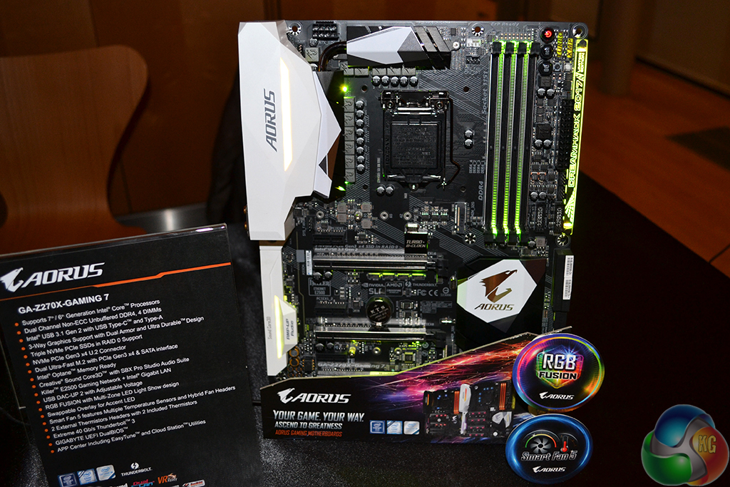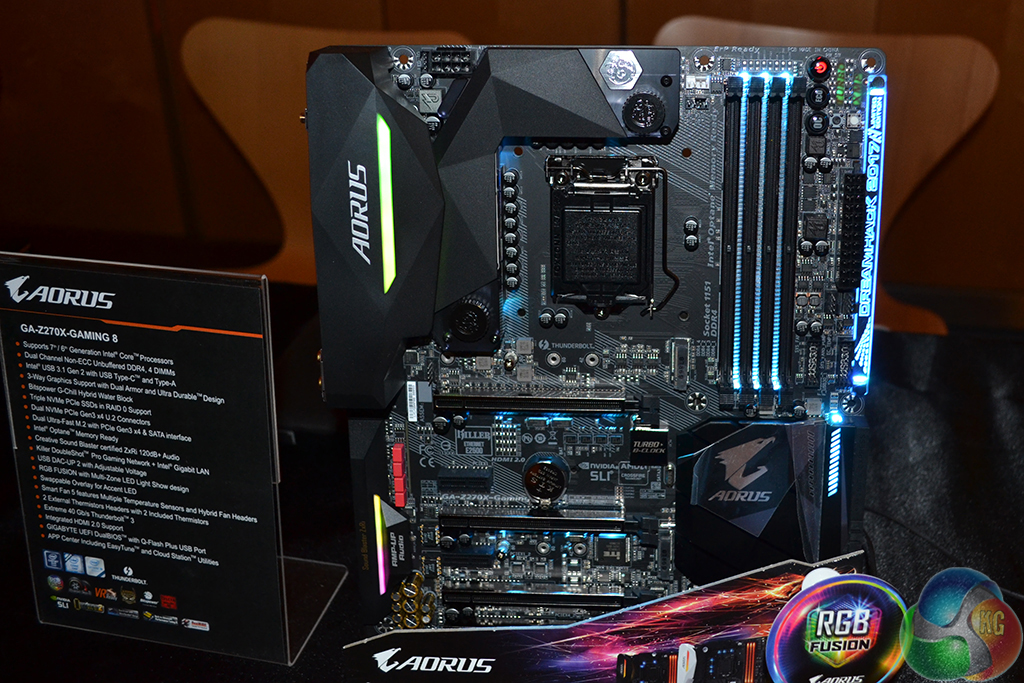 Focussing first on RGB Fusion, as 2016 was the year of RGB-everything and it looks like 2017 will follow that trend, Gigabyte gives its current line-up of Aorus Gaming motherboards the full colour treatment.