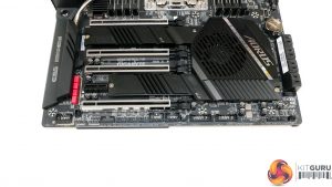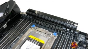 That last point is absolutely ideal for dual-purpose buyers of this motherboard. If you’re a gamer by night whose work commands a pair of dual-slot graphics cards by day, you’re likely to be smiling at the ability to install two additional high-bandwidth devices such as RAID controllers, video capture cards, accelerator devices, or fast NICs.
