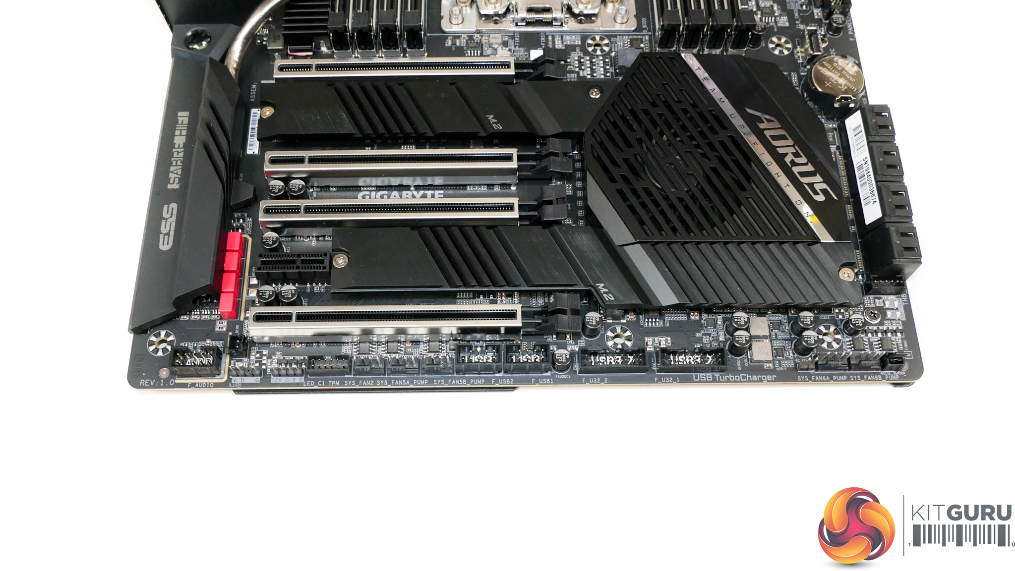 Gigabyte is clearly under no illusions of the cooling required with Threadripper builds. As such, we find five 4-pin fan headers mounted along the motherboard’s bottom edge. This is a superb move by Gigabyte as it gives plenty of connection option in a location that is simple to cable manage and easy to reach for most chassis fans.