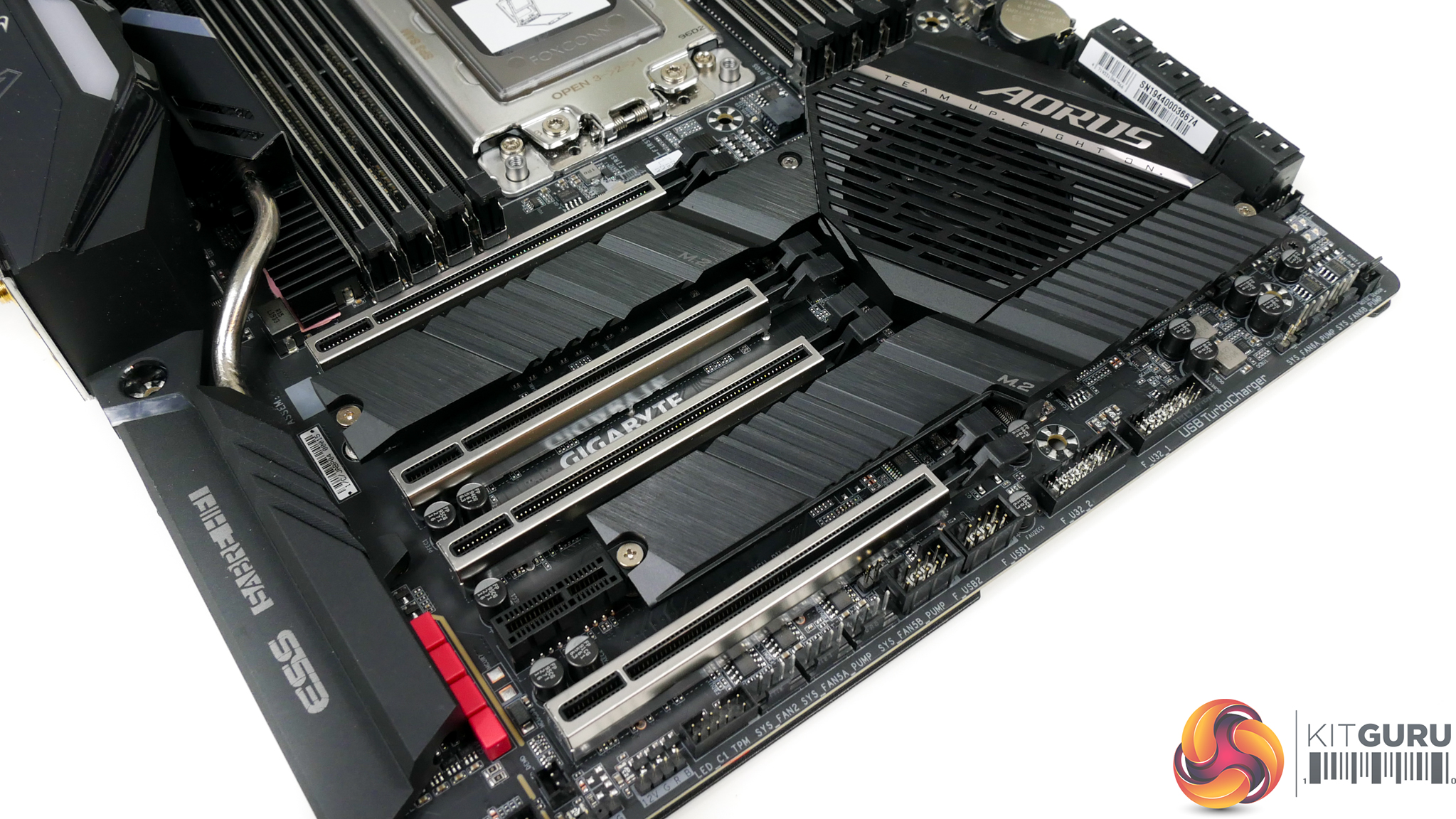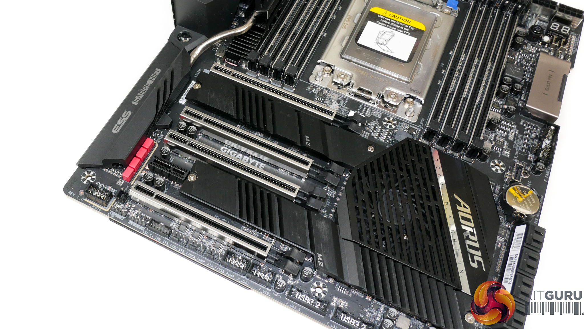 The bottom edge connectors are slightly different on the TRX40 Aorus Master thanks to Gigabyte’s adjusted layout decisions already highlighted.