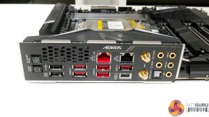 The full-cover rear IO shroud is home to the single RGB lighting zone and the Aorus logo. Beneath this shroud lies the rear ports that see an integrated IO shield deployed. This is a premium touch that I am enjoying seeing on more motherboards in today’s market.