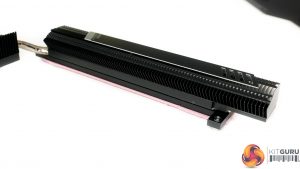 As is usually the case, though, an open-venting graphics card sat above the SSDs will raise their temperature considerably. ASUS’ vertically-orientated M.2 mount near the 24-pin connector is one of the best methods we have seen for avoiding this potential cooling headache.
