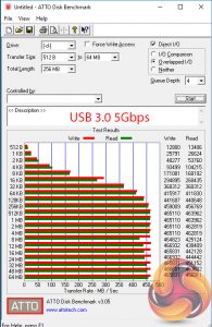 We test USB 3.0 5Gbps and USB 3.1 Gen 2 10Gbps performance using a pair of Corsair Force LE 120GB SSDs in RAID 0 connected to an Icy Box RD2253-U31 2-bay USB 3.1 enclosure powered by an ASMedia ASM1352R controller.