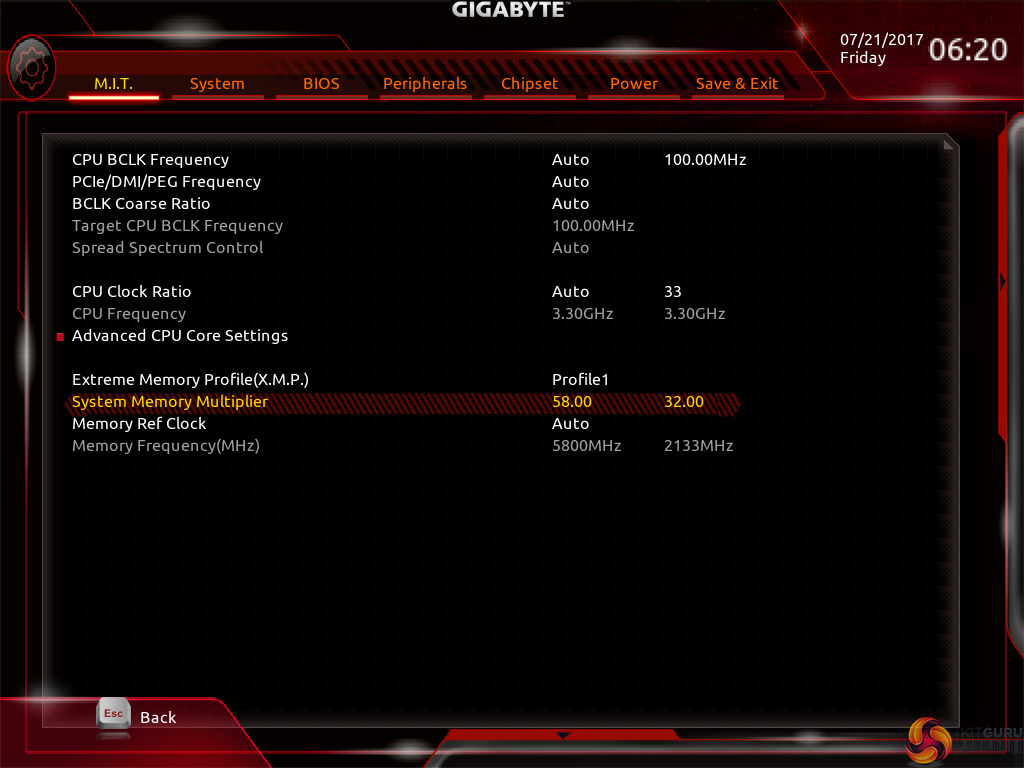 There is a help section on the right side of UEFI pages but it must be manually selected to be displayed. Competing motherboard vendors’ approach of permanently displaying valuable information on the right side is better. Memory dividers up to 58x can be selected and enabling XMP is as easy as clicking the button.