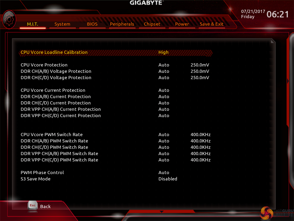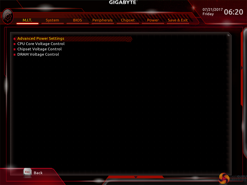 The subsection splitting forces a user to jump back and forth between pages but it also helps to keep the individual subsections tidy and without an overwhelming amount of information on one page (I’m looking at you, ASUS and MSI). Judging whether this sectioned layout or one where most settings are on a single page is better is down to individual preferences, as my colleague Ryan is not particularly fond of jumping between subsections but I personally prefer the segregation.