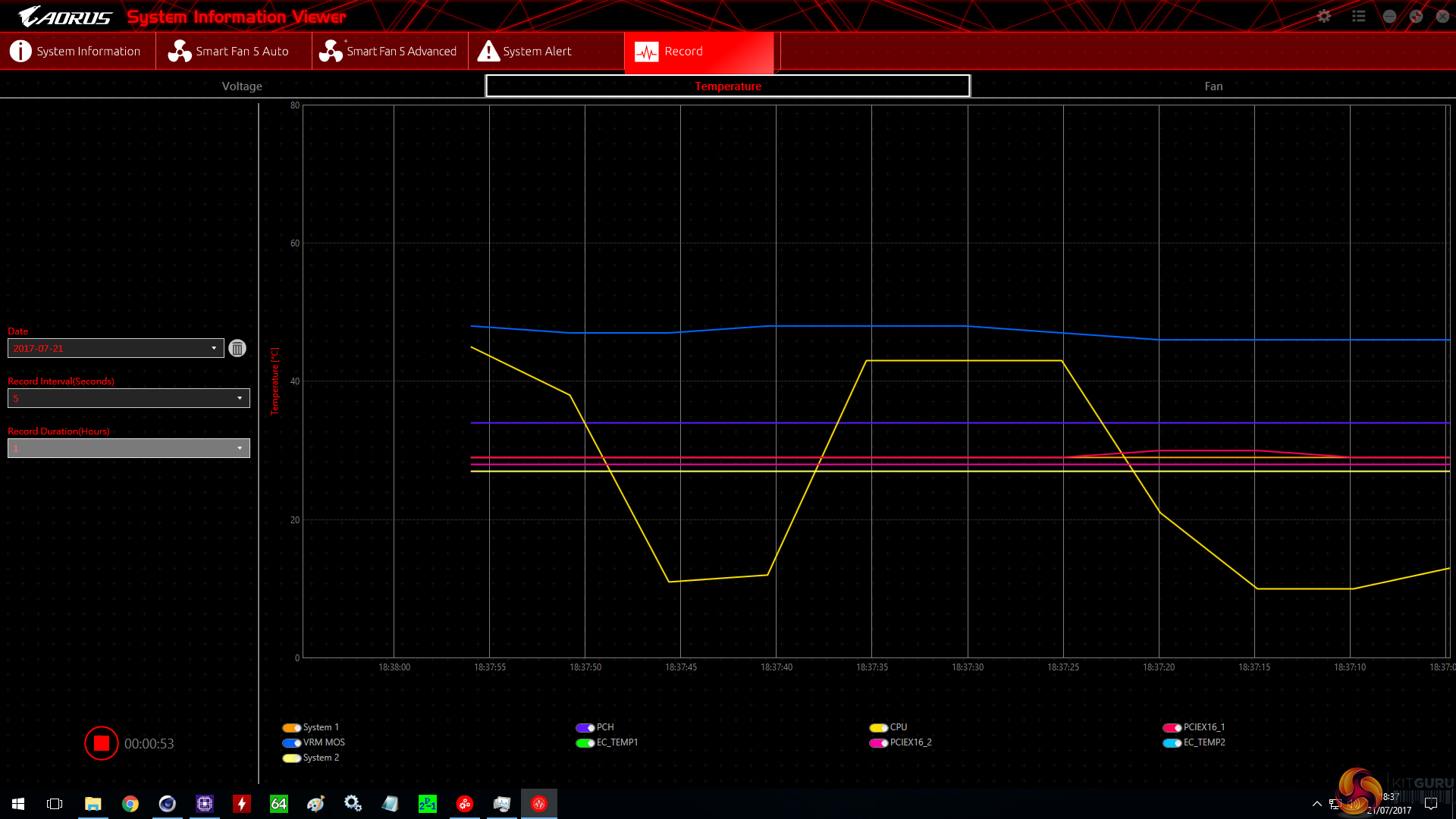 System recordings relating to voltages, temperatures, and fan speeds can also be made. This is particularly useful for analysing stability in the form of checking how your system behaves during an extended gaming or video rendering session, for example.
