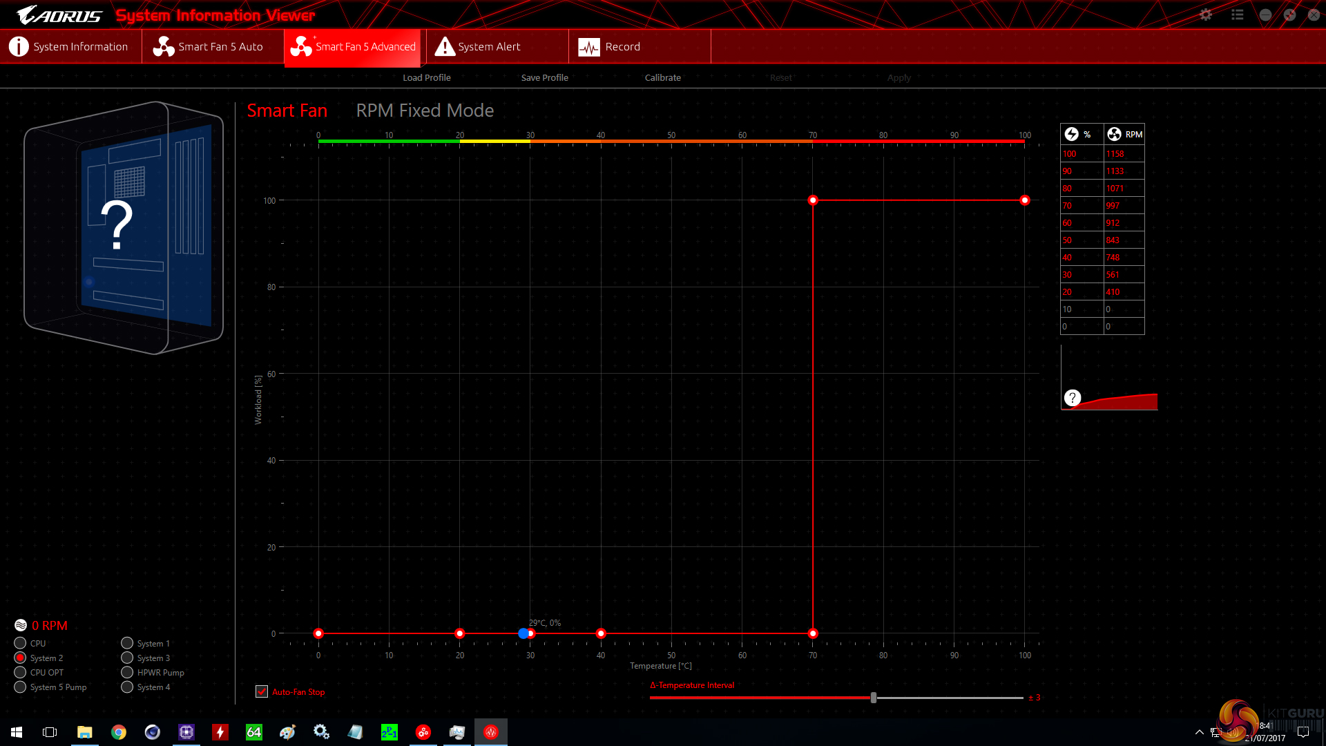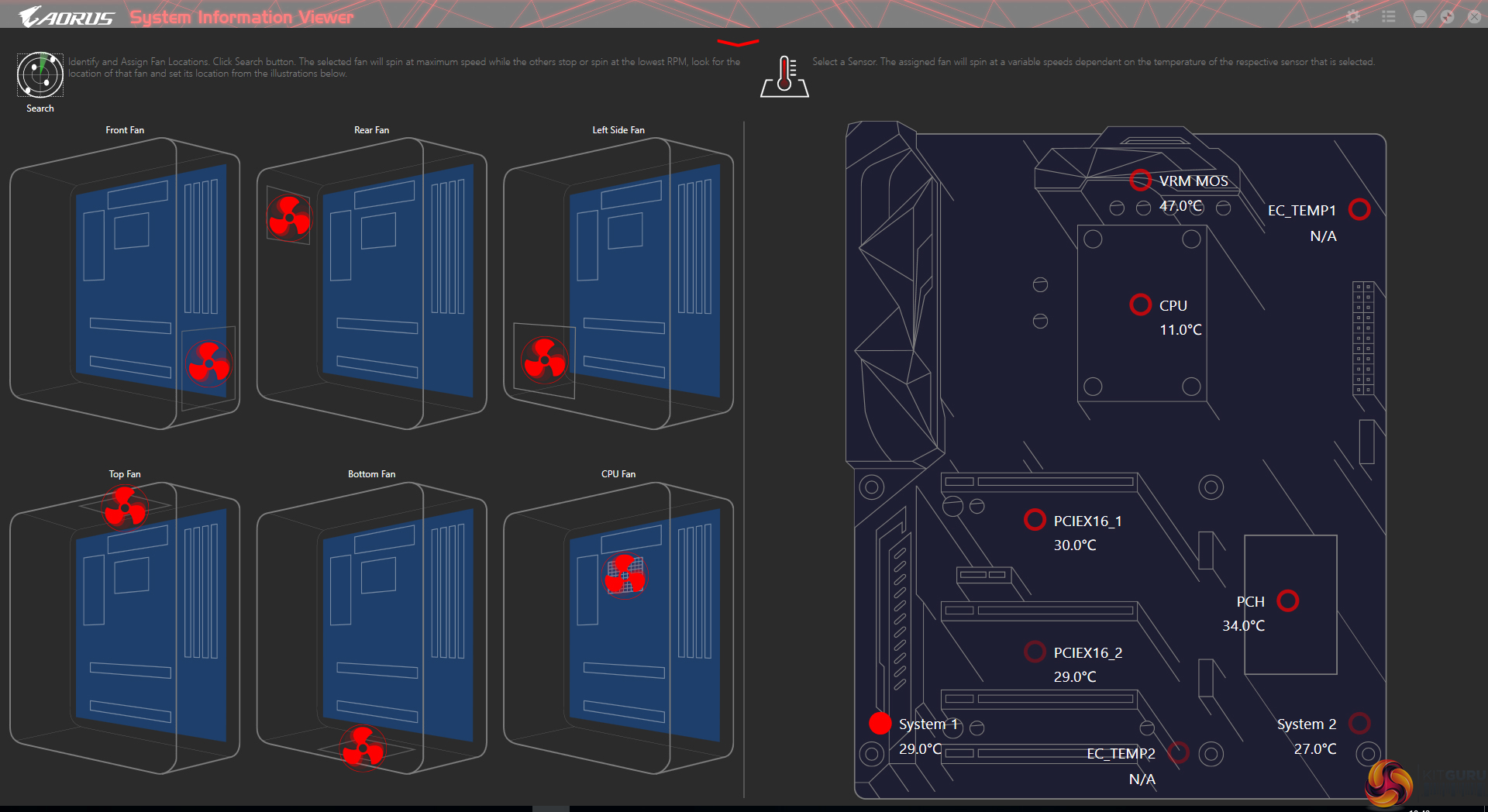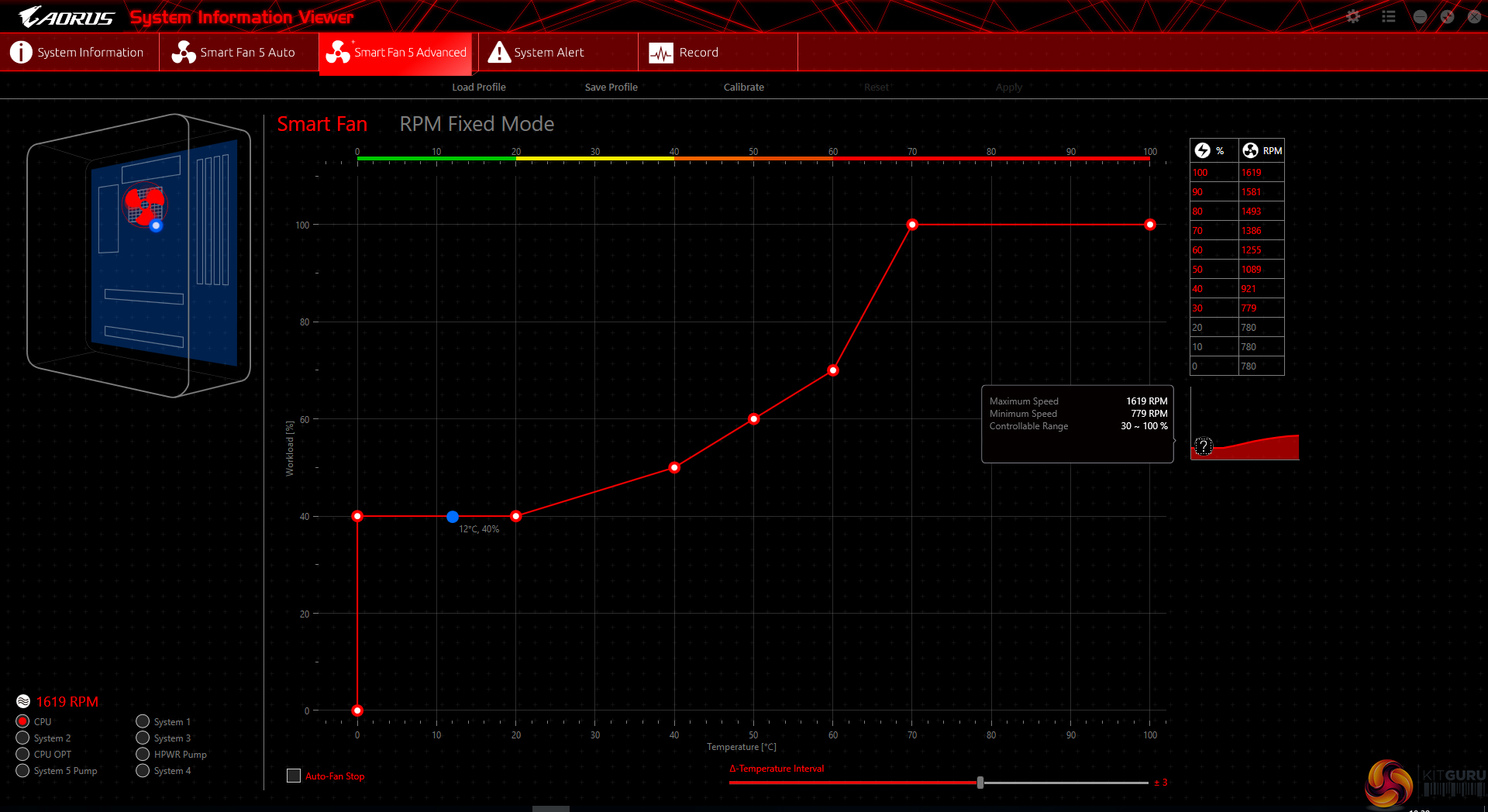 Gigabyte also provides a fan speed calibration option as well as the ability to see fan positions and temperature readings in a visual manner.