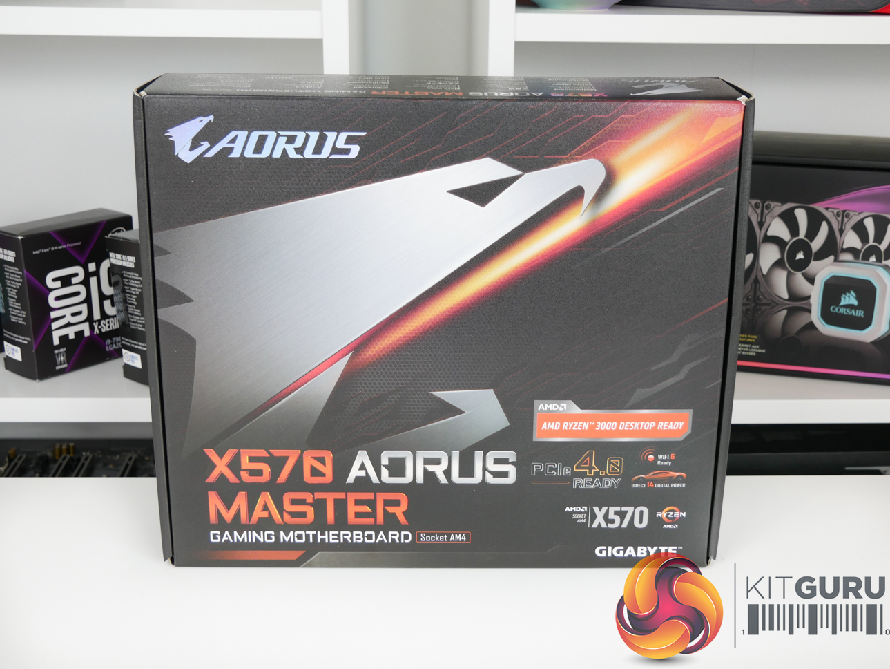 Gigabyte ships the Aorus X570 Master in a dark box that features plenty of product information.