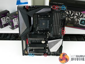 Shifting around all that electrical current is what Gigabyte terms a ‘Middle-Loss, six-layer’ PCB. That’s one of the main differences between the X570 Aorus Master and the Extreme, with the more expensive sibling getting a ‘Low-Loss, eight-layer’ PCB instead.