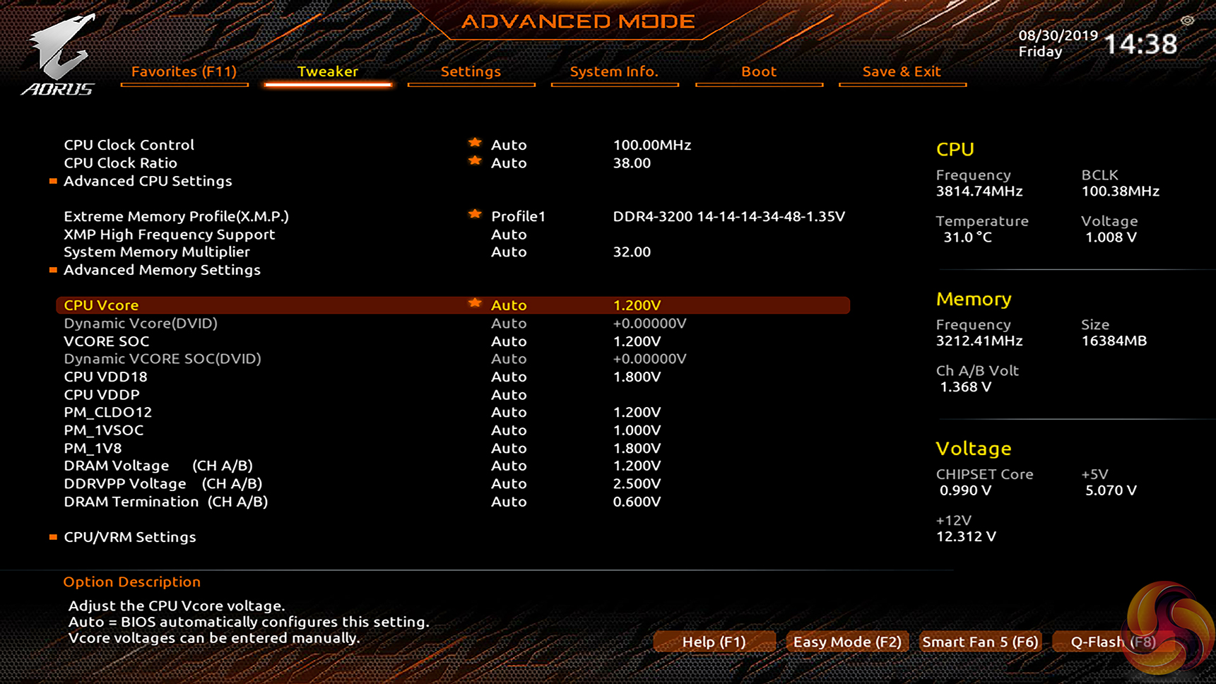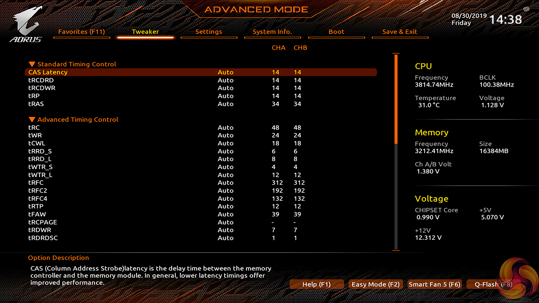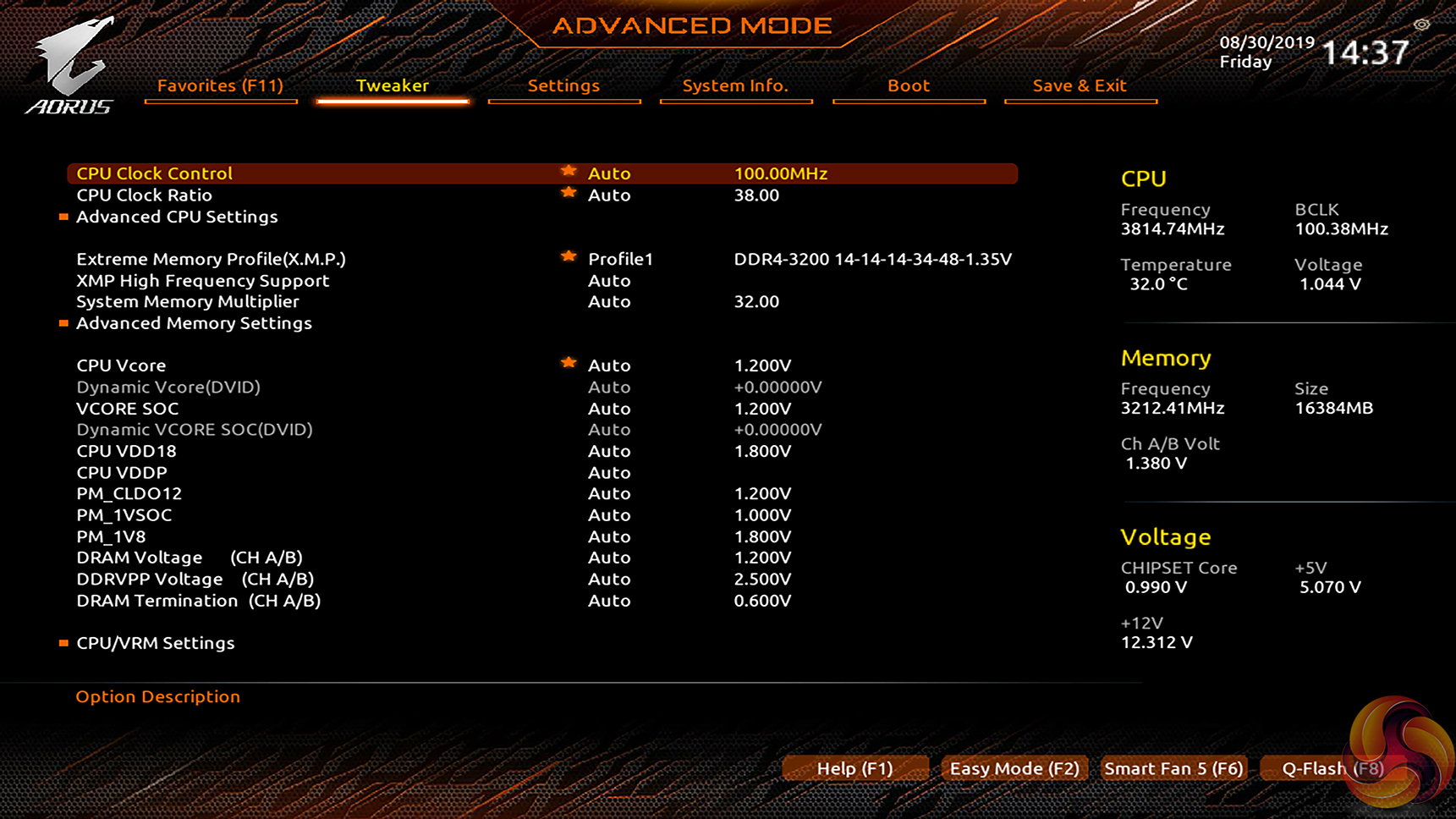 Tweaker is the main section where parameters relating to voltages, frequencies, and power settings for the system’s main components are found. All of the main sections are found on one page, with additional ‘Advanced' subsections being accessible. The subsection splitting forces a user to jump back and forth between pages but it also helps to keep the individual subsections tidy and without an overwhelming amount of information on one page.