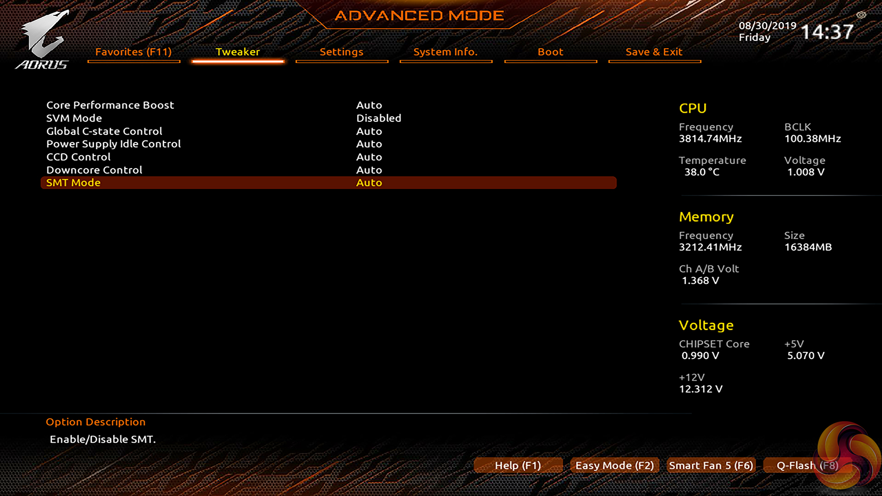 Gigabyte’s Easy Mode implementation is as good as the versions used by competing vendors. I like that the fan icons rotate to show which headers are currently active.