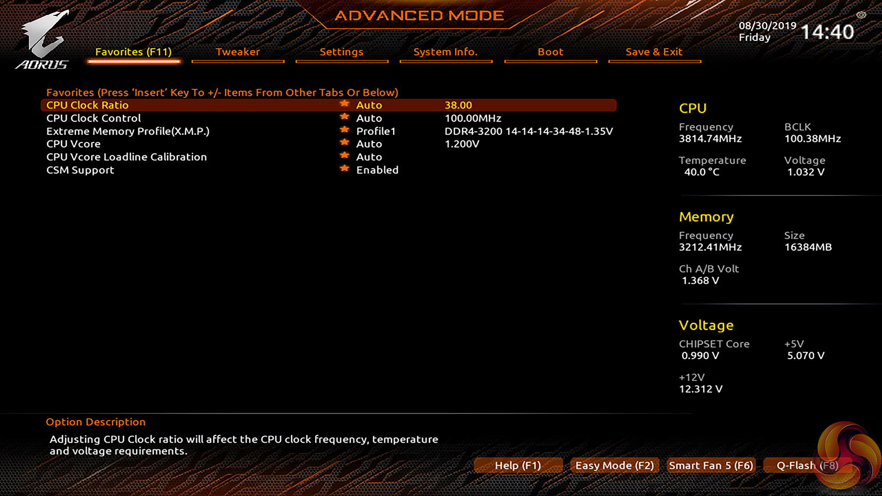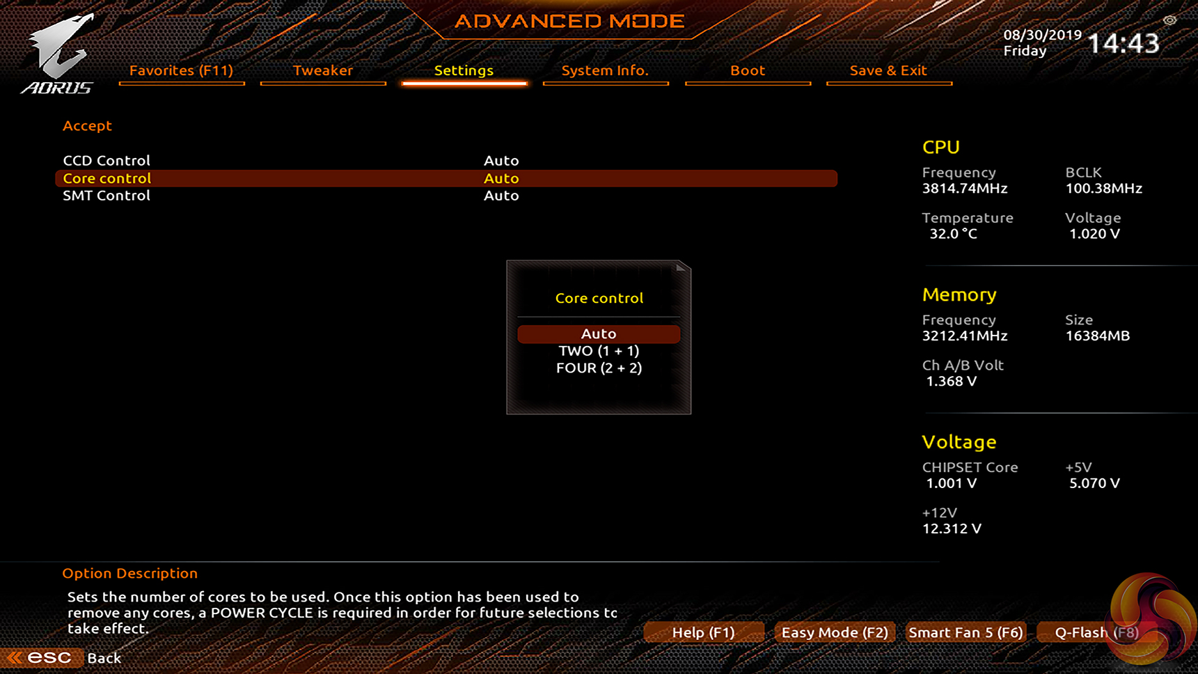 I would say that Gigabyte's improvements to its overall UEFI – especially the critical voltage and frequency section – have been significant over the past couple of years. There are, however, still areas where improvement is required. There are generally no drop-down lists for selecting frequencies and no colour indication is given to highlight a high voltage level. I also found navigating to the power controls section for the CPU a little more long-winded than it needs to be, and the inability to increase and decrease this value with +/- keys was incredibly frustrating.