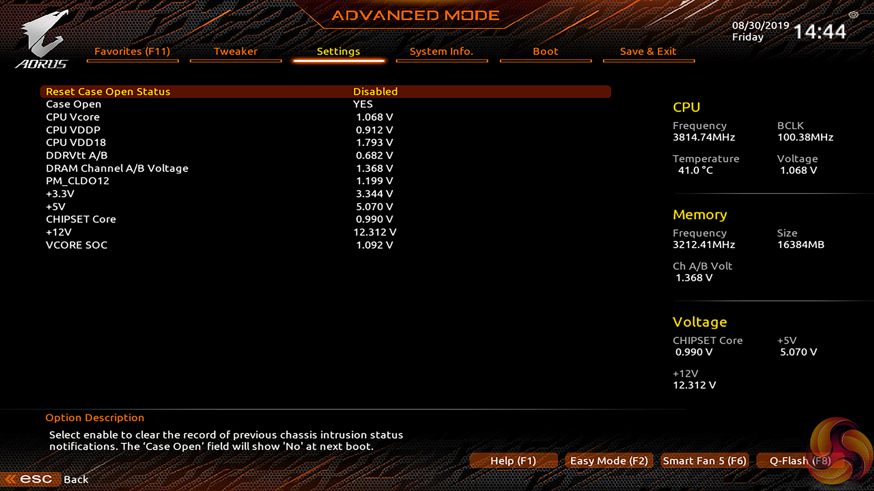 The Smart Fan 5 settings subsection can be accessed from any page by hitting the F5 key. This superb fan control system is the star of the show for Gigabyte’s UEFI.