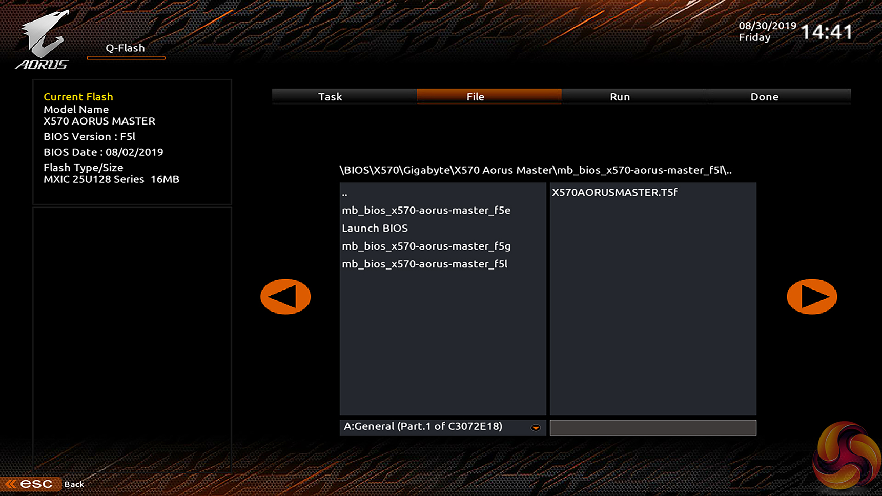 Q-Flash is accessed by hitting F8 on any main UEFI page. The tool is able to access folders within a USB flash drive so that one can locate the BIOS file and flash it.