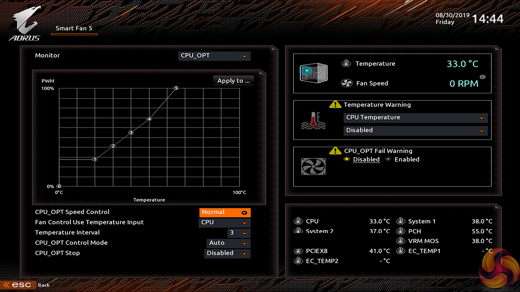 Not all the fan headers can interact with all monitoring points but this range of sensors is superb. A user should be able to comfortably set fan speed adjustments based on relevant data from the CPU, MOSFET, and PCIe slots.