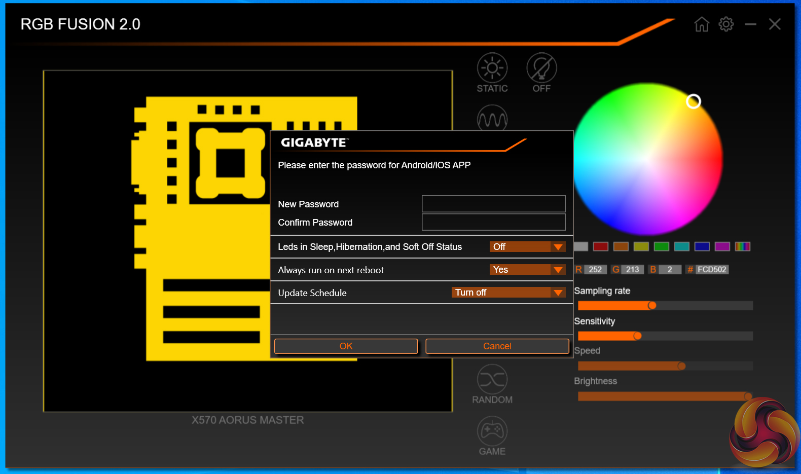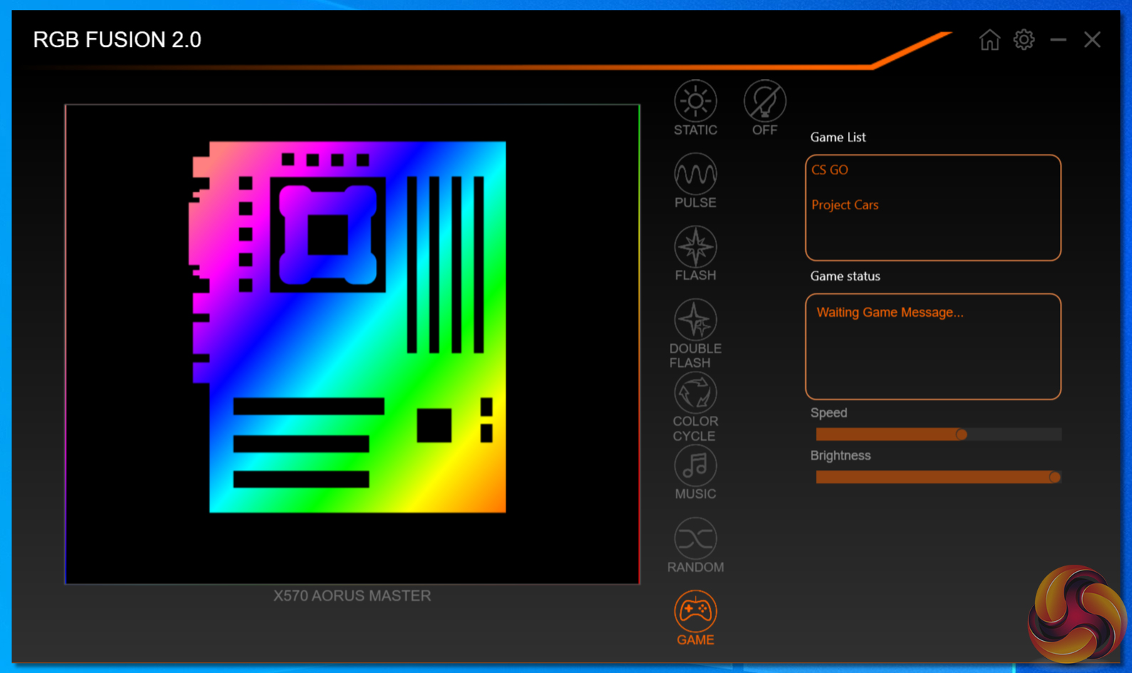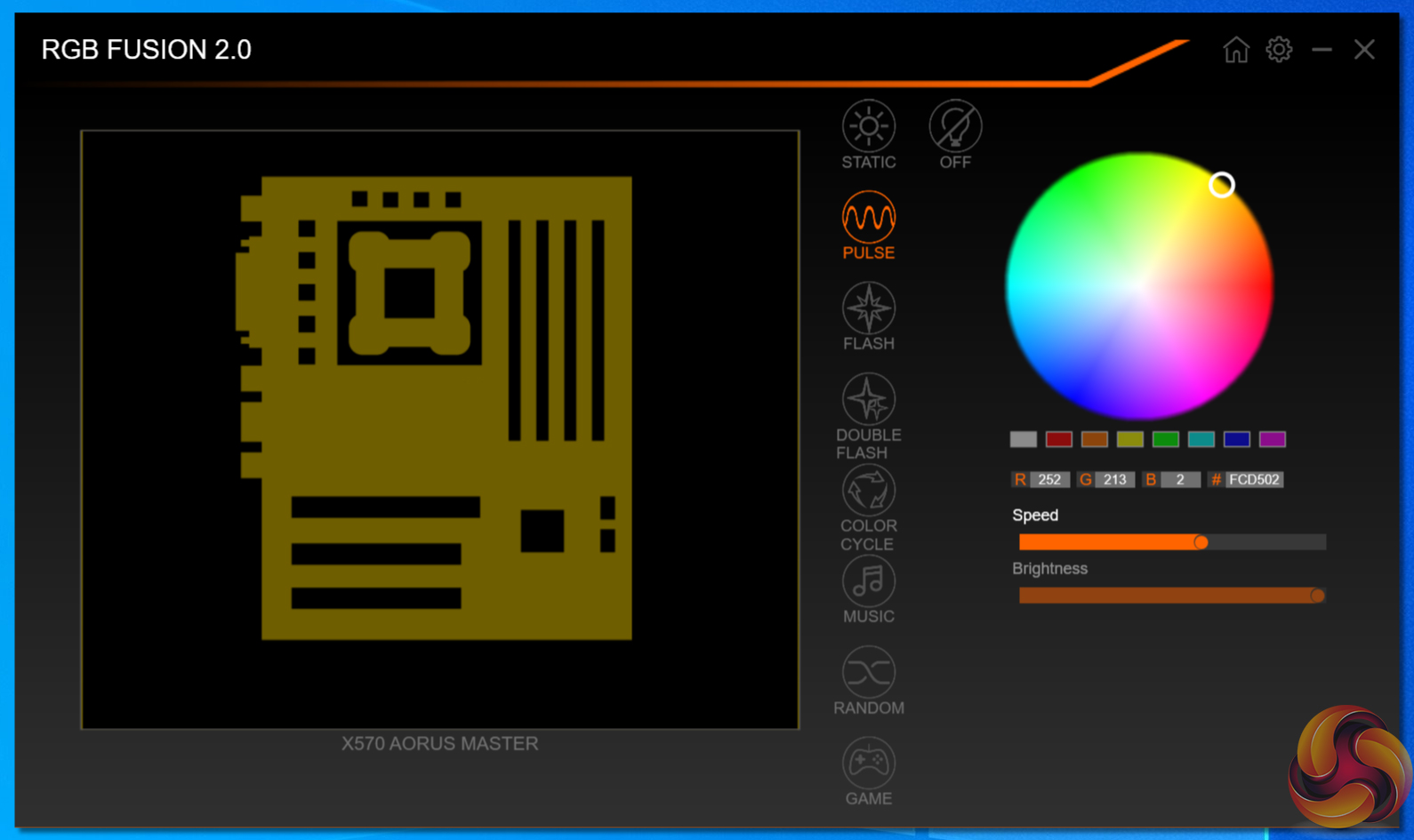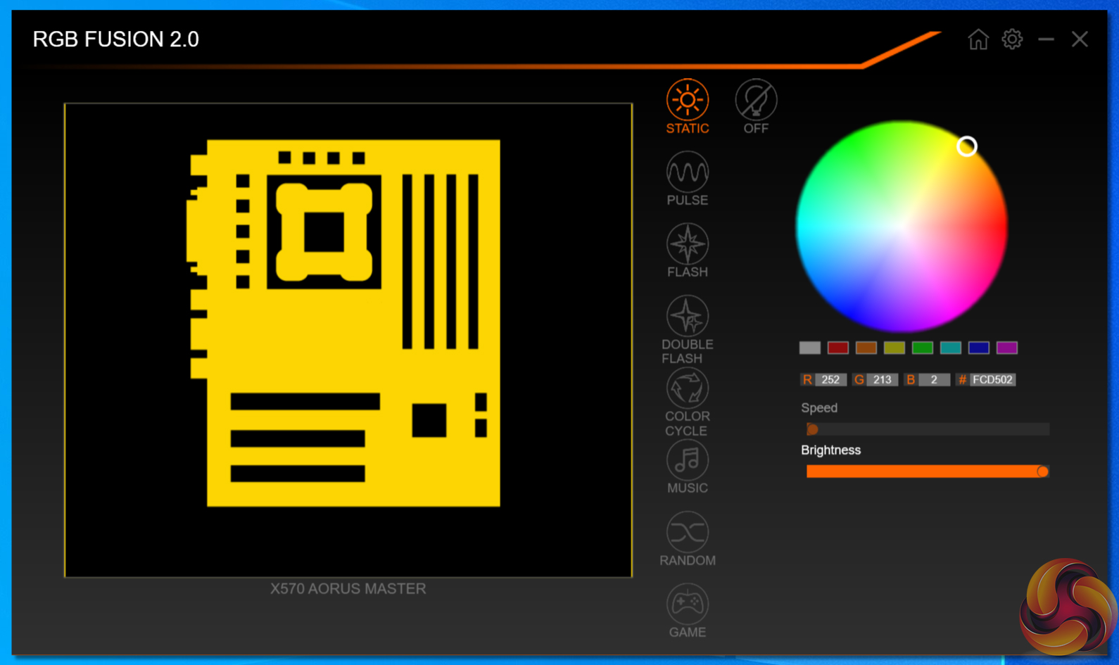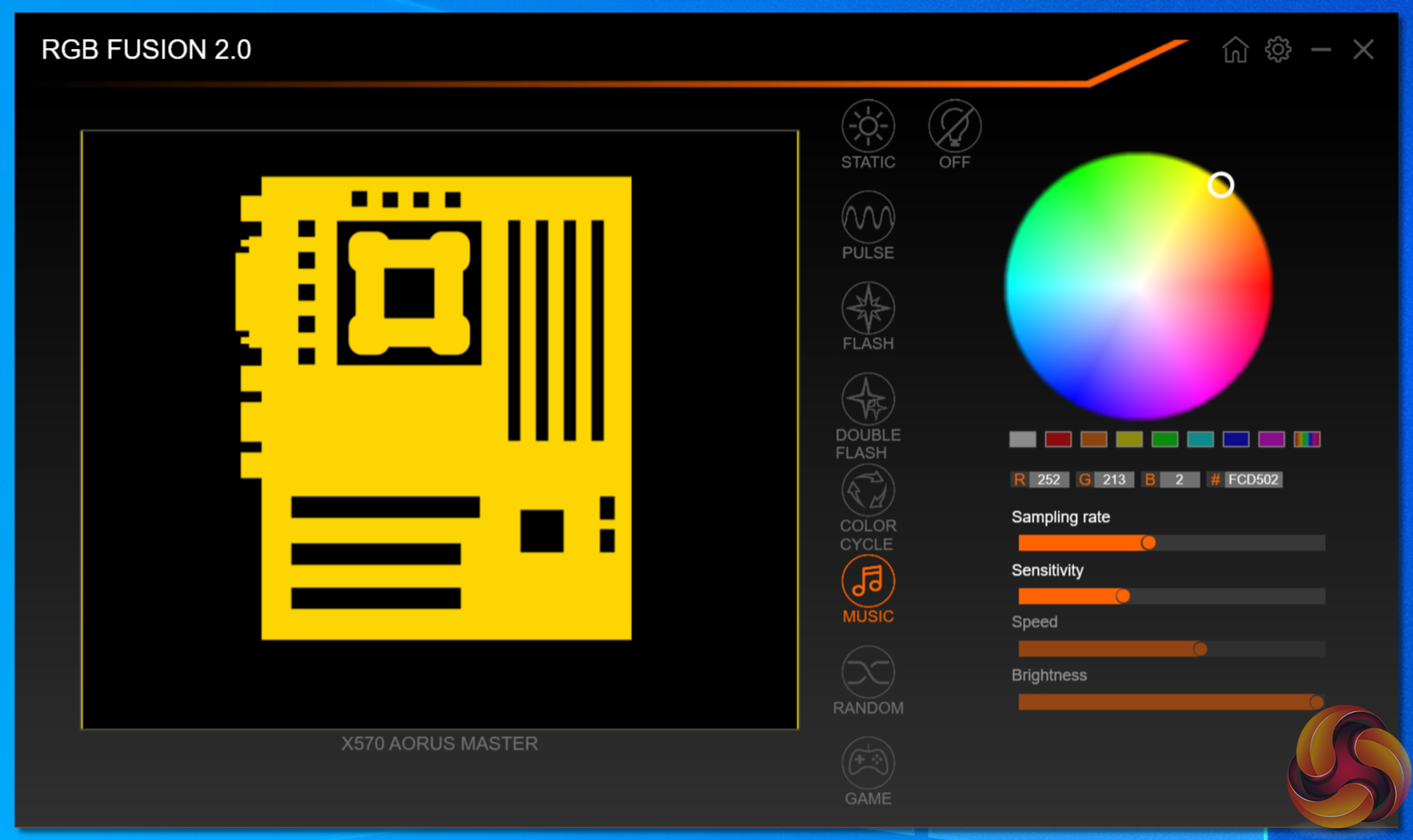 RGB Fusion 2.0 has a decent variety of LED operating modes and the colour wheel is incredibly simple to use.