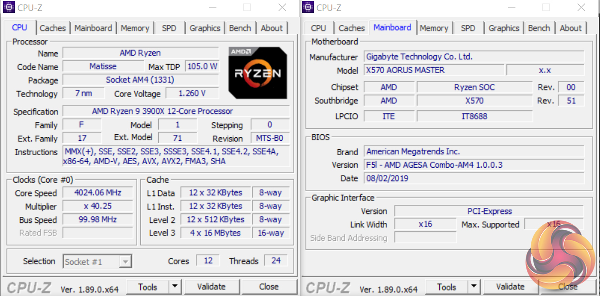 - Gigabyte X570 Aorus Master UEFI F5L (latest at the time of testing).