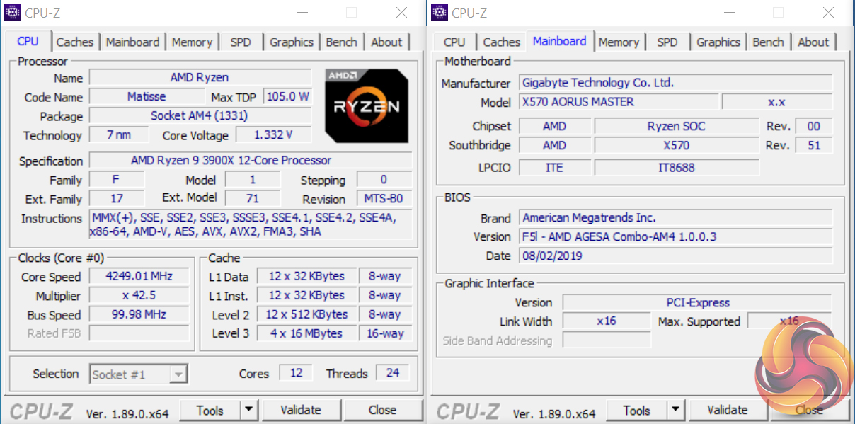 We were able to hit a stable frequency of 4250MHz using 1.35V. The Gigabyte X570 Aorus Master motherboard forced us to apply the High load-line calibration setting in order to keep close to 1.35V under load.