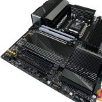 The power delivery setup is built around a Twin 16+2+2 digital VRM design. The power stages for the VCore are 70A-rated and this is all put together on the 8-layer copper PCB.