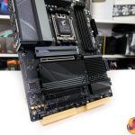VRM cooling is handled by two large aluminium structures, one of which overhangs the rear IO to act as a cover. These two individual heatsinks are connected via an 8mm heatpipe as to share thermal load between them.