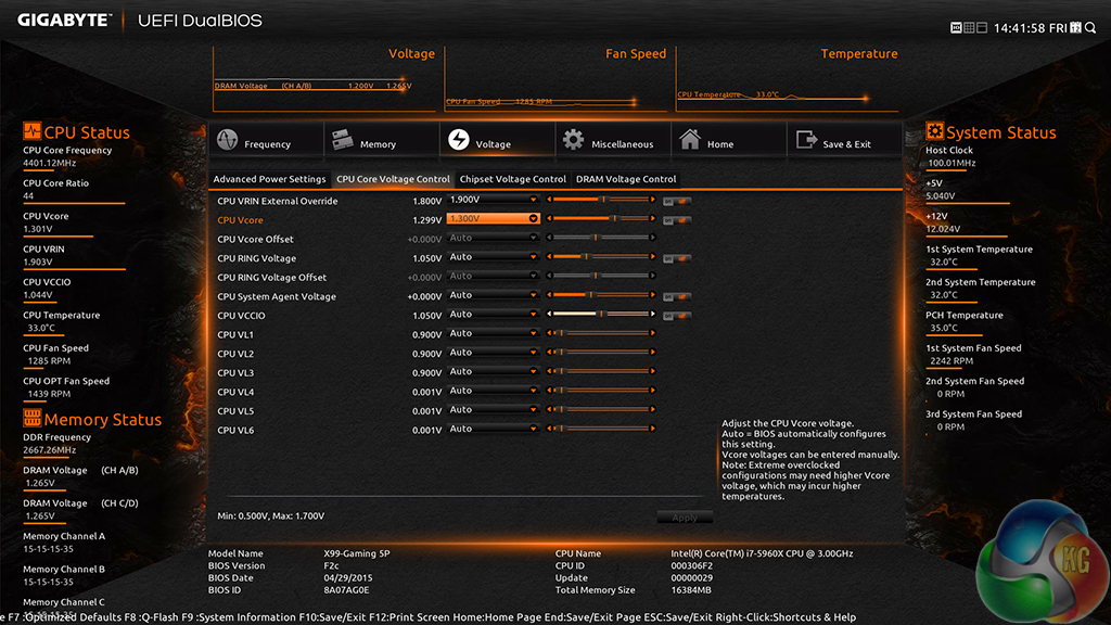 To test the Gigabyte X99-Gaming 5P motherboard’s CPU overclocking potential, we first increased the CPU VCore to 1.30V and CPU Input Voltage to 1.9V. We also enabled ‘K OC' and applied Extreme LLC (to feed a constant voltage).
