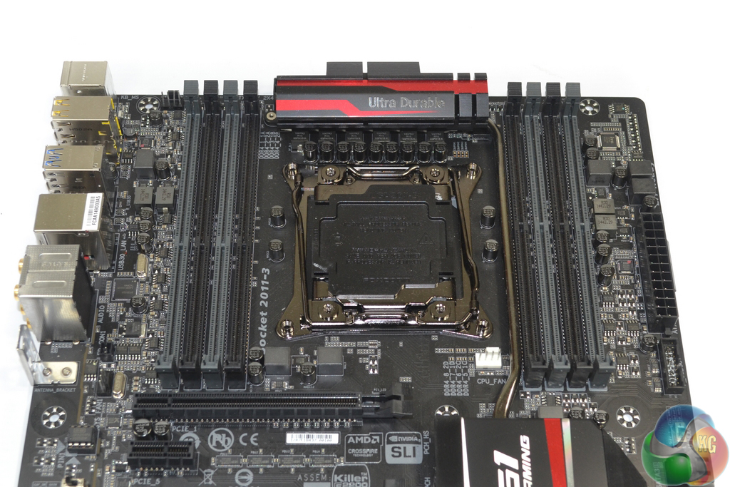 LGA 2011-3 CPUs can be installed in the socket. Gigabyte adds extra pins to the socket (much like Asus pioneered with the vendor’s OC Socket) in order to unlock enhanced overclocking options and capacity.