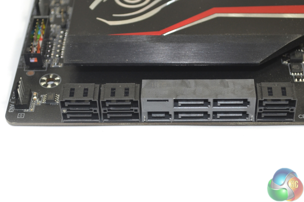 All ten SATA 6Gbps ports are provided by the X99 chipset. Two of the ports double up as the board’s 10Gbps SATA-Express connector.