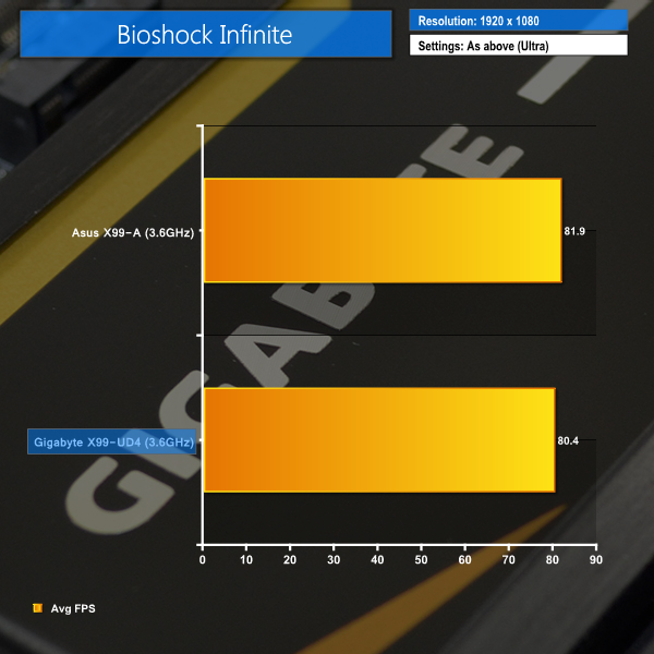 Bioshock Infinite seems to take a notable performance hit from the Gigabyte system's reliance upon the lower-bandwidth PCIe 2.0 interface. Conversely, Metro: Last Light registers a 1.4 FPS higher score for Gigabyte's X99-UD4.