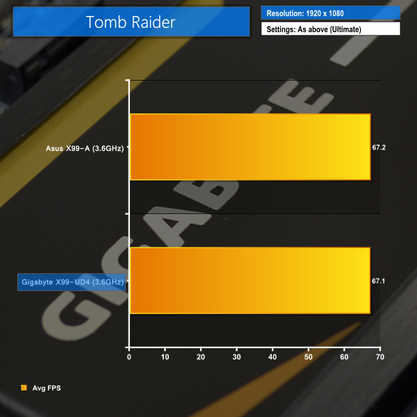 Frame rate differences between the two motherboards in Tomb Raider are well within the benchmark's margin of error.