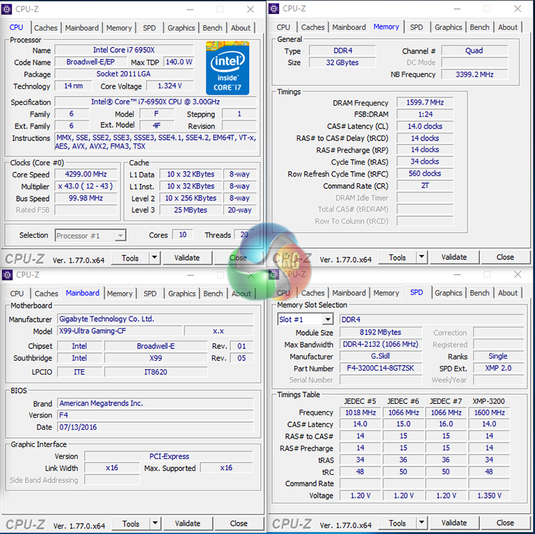The best overclocking result that we achieved was pushing our 6950X CPU to its 4.3GHz limit, while also increasing the CPU Cache (Ring) frequency to 3.4GHz.